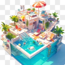 3D夏日泳池免抠元素