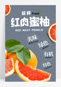 蓝色简约红肉蜜柚柚子秋天水果海报设计