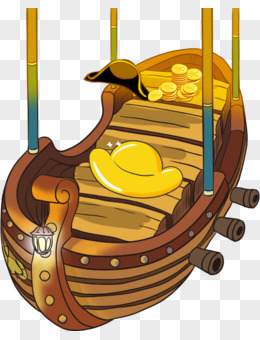 手绘创意合成效果木船金元宝