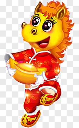 卡通手绘马年冰箱贴手举牌吉祥如意免抠元素