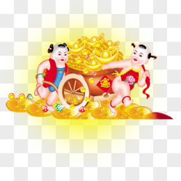 一组手绘插画风新年小元素新年套图合集之金元宝素材
