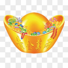 剪纸风招财聚宝盆免抠元素