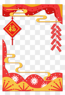 一组手绘插画新年剪纸竖版边框套图合集元素一