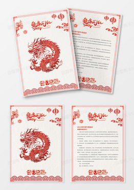 红色简约剪纸2024年龙年元旦新年贺词信纸元旦信纸