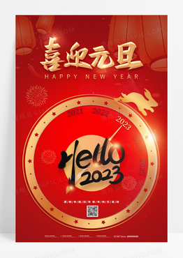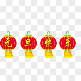 灯笼素材元旦快乐 卡通扁平红色灯笼
