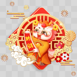 红色2024年纳财龙年合成元素
