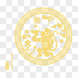 一组中国风剪纸新年活动插画金色立体合集元素六