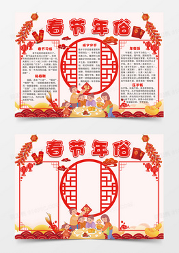 春节年俗小报2023兔年新年元旦电子手抄报模板
