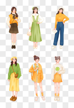 一组手绘时尚元气美少女穿搭合集系列一元素