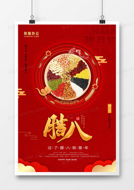 红色喜庆新年传统节日腊八节海报