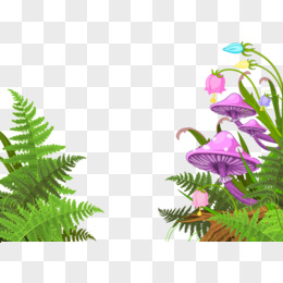 手绘蕨类植物蘑菇