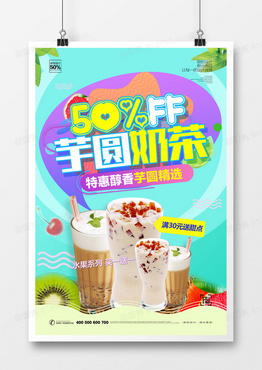 创意卡通芋圆奶茶宣传海报设计
