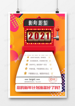 创意波普风新年愿望清单海报设计