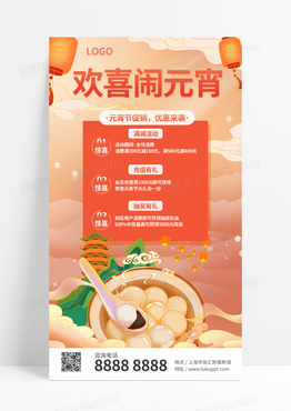 黄色中国风插画欢喜闹元宵2024元宵节手机宣传文案海报