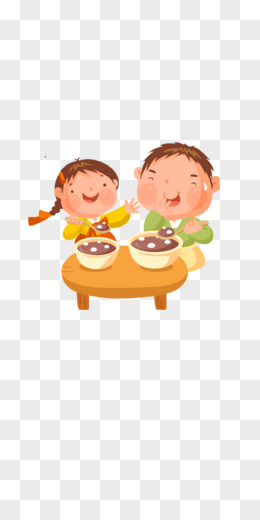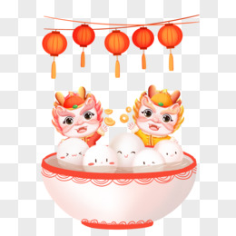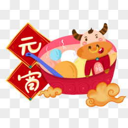 手绘卡通元宵节小牛和儿童吃元宵场景素材