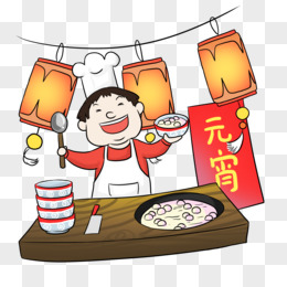 卡通手绘元宵节小女孩吃汤圆免抠元素