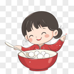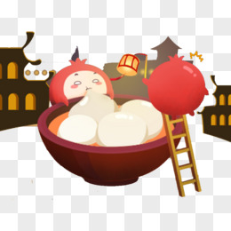 卡通创意免抠小女孩提灯笼坐汤圆元素