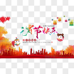 元宵节夜晚屋顶赏灯手绘卡通元素