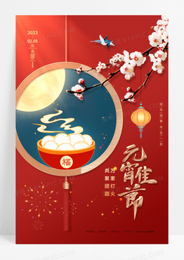 红色简约喜庆月亮元宵元宵节节日海报