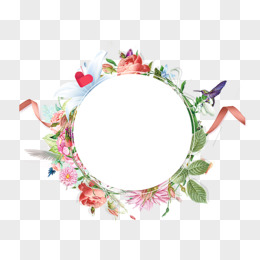 创意合成红色蓝色蝴蝶结花卉圆形边框