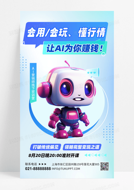 蓝色渐变科技培训AI课程培训3D元宇宙科技风人物科技风海报手机海报