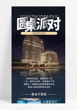 蓝色商务风圆桌排队公司年会预定酒店活动手机海报长图