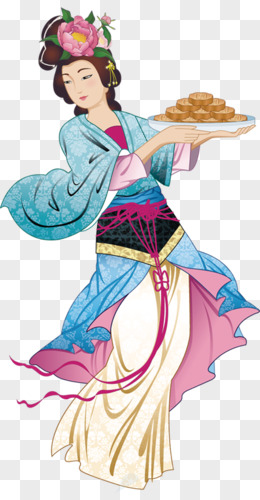 中秋节手绘卡通嫦娥玉兔免抠元素