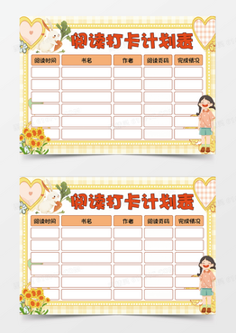 橙色背景阅读打卡计划表格手抄报简约卡通