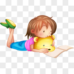 卡通手绘免抠短发女孩坐在地毯上看书元素