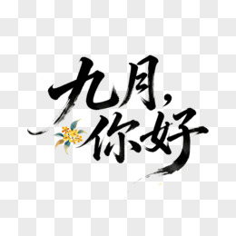 你好九月剪纸风艺术字设计