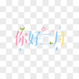 你好三月艺术字免抠元素