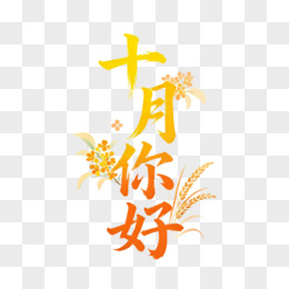 你好十月艺术字免抠元素