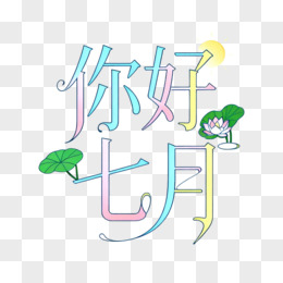 你好七月艺术字免抠元素