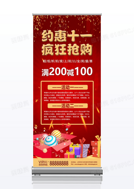 红色喜庆大气约惠双十一双11疯狂抢购促销活动展架易拉宝双十一展架