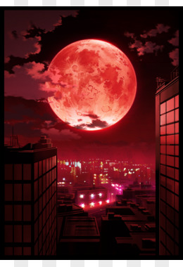 鲜红的月亮动漫插画