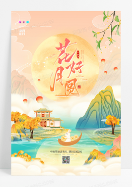 国潮插画情满中秋中秋月亮国潮海报宣传设计