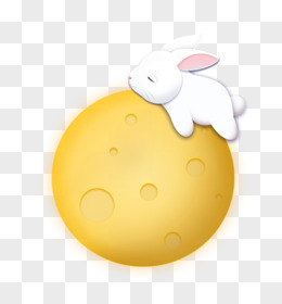 手绘可爱中秋月亮玉兔祥云免抠元素