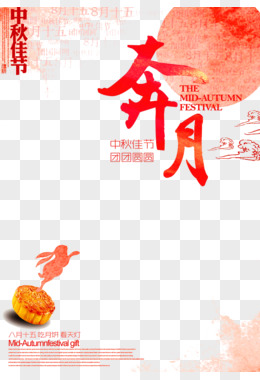 橙色月亮嫦娥玉兔花篮中国画中秋