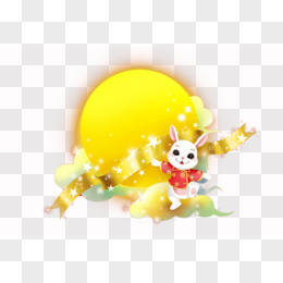 巨大的金色月亮可爱的兔子和月饼中秋节免抠元素