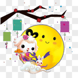 中秋节之手绘卡通美丽嫦娥捧玉兔