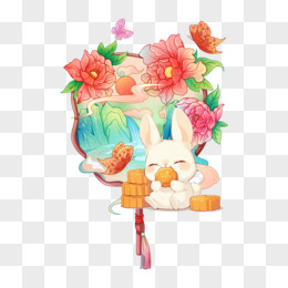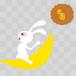中秋节兔子吃月饼创意合成元素