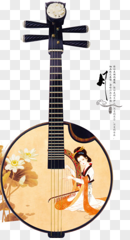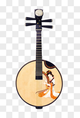 一组青色调手绘国风乐器套图之月琴免抠素材