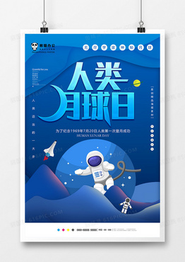 蓝色大气人类月球日节日海报设计