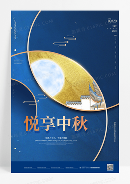 蓝色简约悦享中秋节日房地产活动海报中秋地产海报