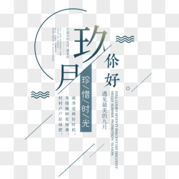创意艺术字九月你好元素