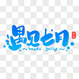 清新简约创意蓝色艺术字遇见七月元素