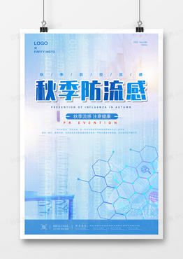 蓝色简约医疗秋季预防流感公益宣传海报设计