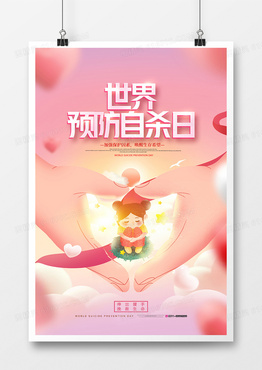 温馨正能量世界预防自杀日插画海报设计