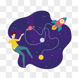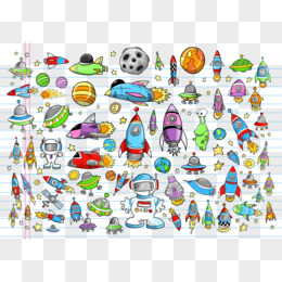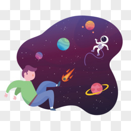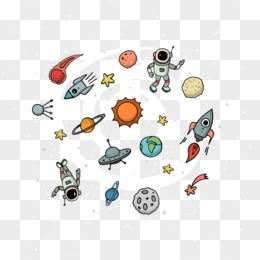 手绘矢量太空简笔画套图之宇航员抱着星球元素
