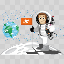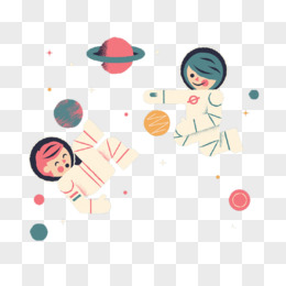 手绘梦幻插画风治愈系坐在星球上的宇航员元素